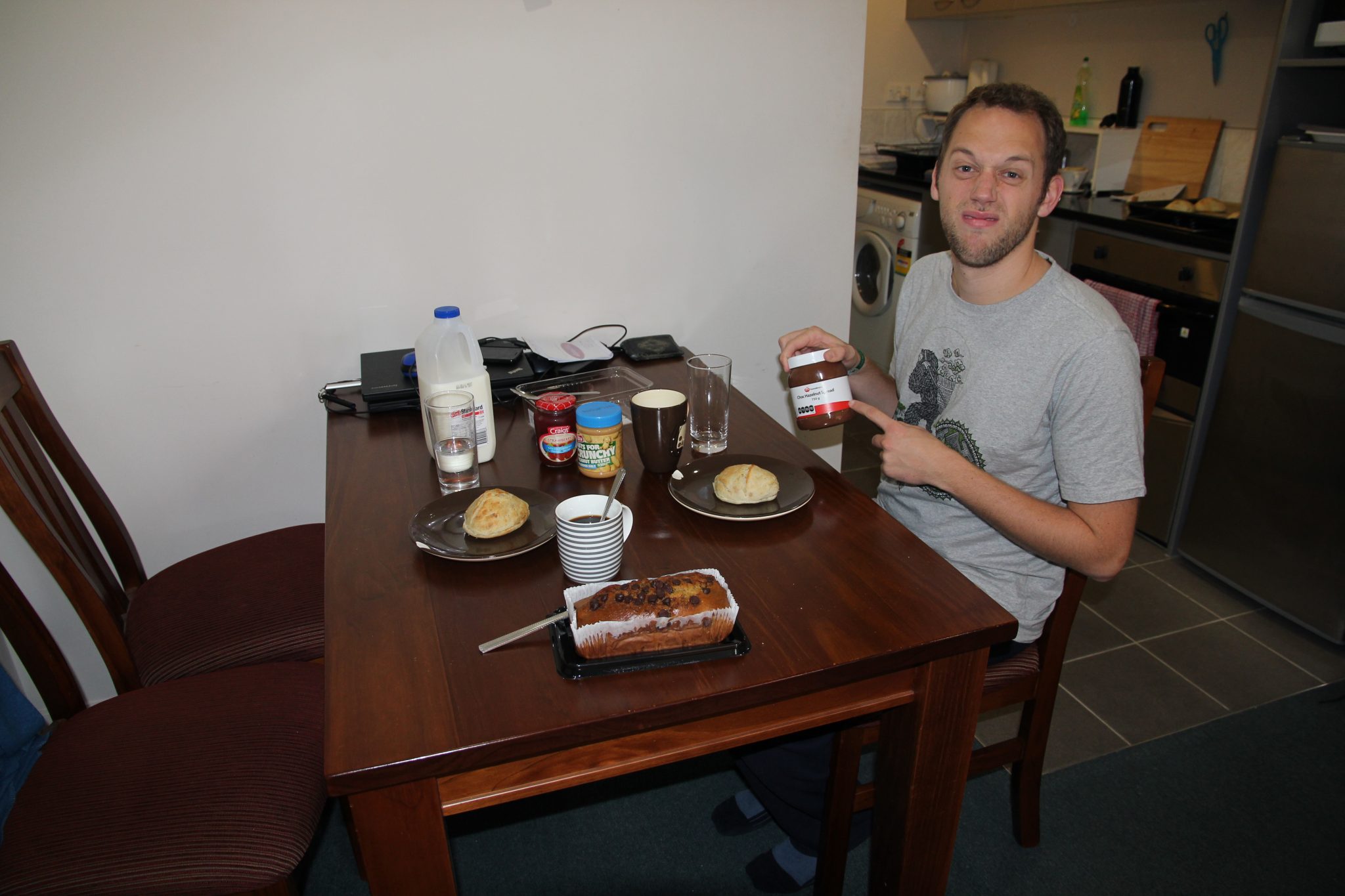 So ein Wochenende beginnt meistens mit einem ausgiebigen Frühstück. Dank meinem alten Arbeitskollegen Kim, können wir Semmeln ohne viel Aufwand nun selber machen. Funktioniert auch gut mit Trockenhefe, was anderes bekommt man hier nämlich kaum. So können wir dem normalen Brot hier aus dem Weg gehen, denn das ist hier der echte Wahnsinn: zusammenknautschen, loslassen – puff, es hat sofort wieder die Ursprungsgröße eingenommen! Und das, obwohl es als Crusty angepriesen wird :-/