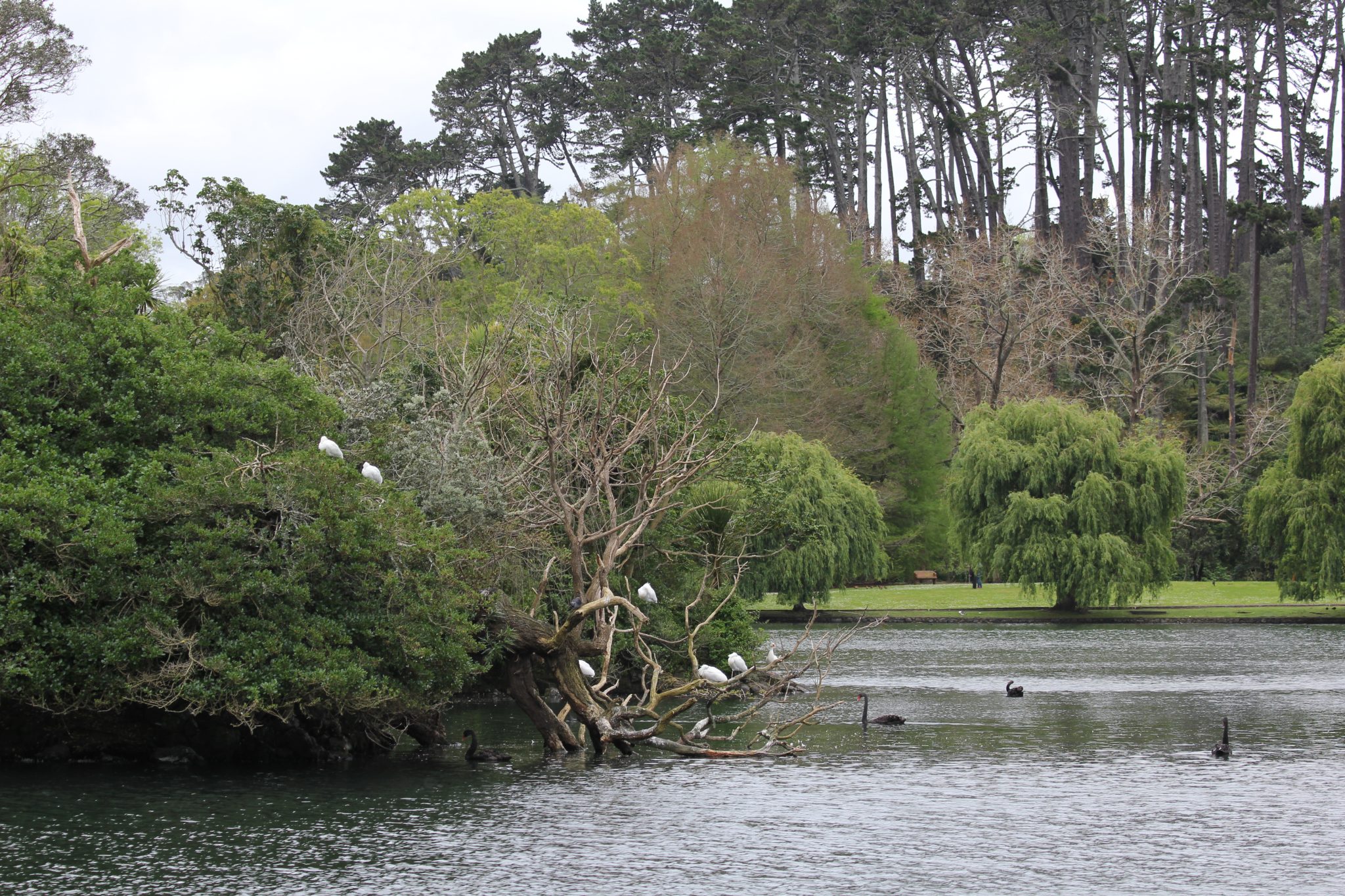 Schön war auch der Western Springs Park mit seeeehr vielen Wasservögeln! Ein Pied Shag Vogel hat einen riesigen Aal herunter gewürgt. Dafür hat er mehrere Versuche gebraucht, da der Aal immer wieder heraus kam.