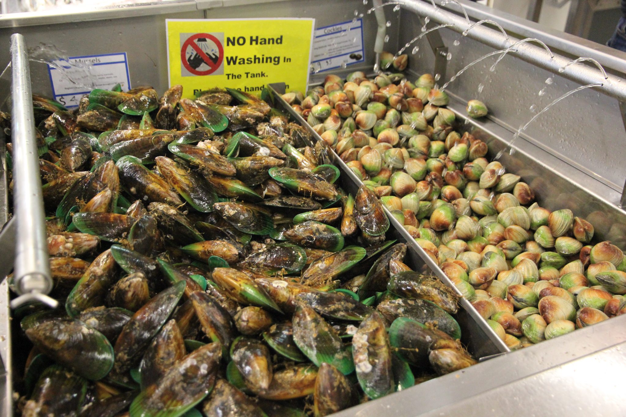 Danach haben wir noch den Fischmarkt bestaunt mit seinen typischen grünen NZ Muscheln. 10 NZD für einen schönen großen Tarahaki bezahlt, der dann zum Abendessen auf den Tisch kam.
