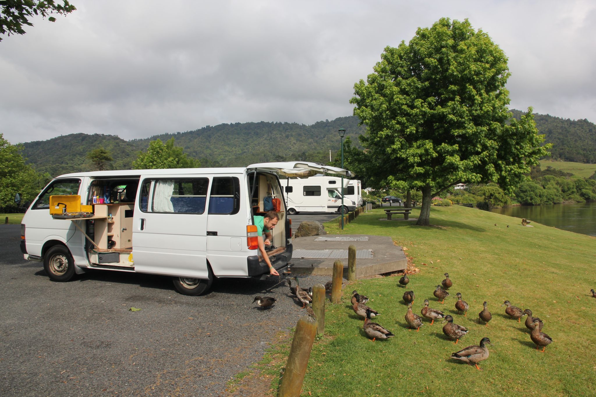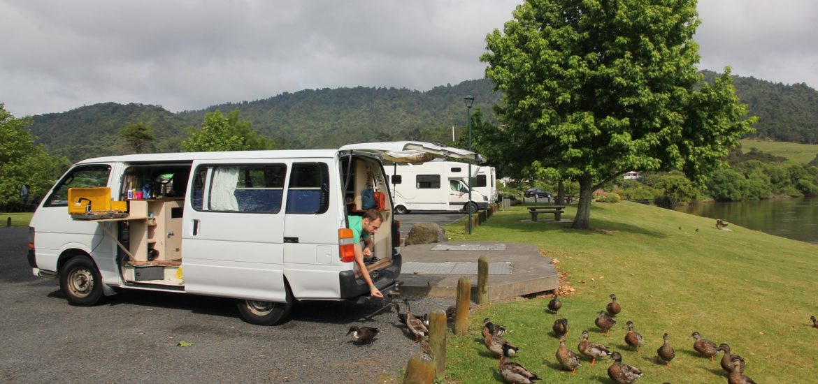 An unserem ersten Wochenende sind wir voller Vorfreude auf die Coromandel Peninsula (Halbinsel) gefahren, hatten aber leider ziemliches Pech mit dem Wetter. Wir hatten aber sowieso noch viel im Camper zu tun und haben die Zeit daher genutzt um das Abflusssystem unter der Spüle zu vervollständigen und Lichter, Regale, etc. anzubringen.
