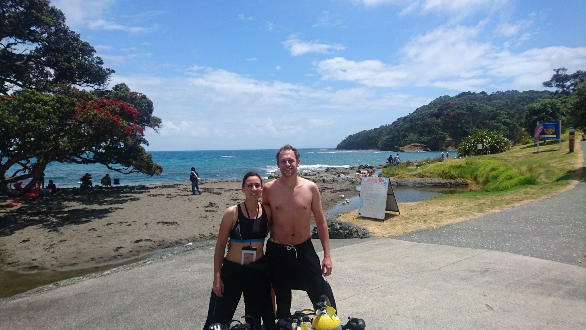 Am Tag drauf haben wir uns dann Tauchequipment ausgeliehen um das Goat Island Marine Reserve nochmal in aller Ruhe Unterwasser zu erkunden. Leider waren die Bedingungen nicht perfekt. Durch den Wellengang wurden einige Partikel im Wasser aufgewirbelt, so dass die Sicht nur etwa 5m war. Es hat sich aber trotzdem gelohnt und wir haben viele große Fische (Wrasse, Blue Moki, Snapper…) und auch zwei Rochen (Eagle Rays) gesehen.