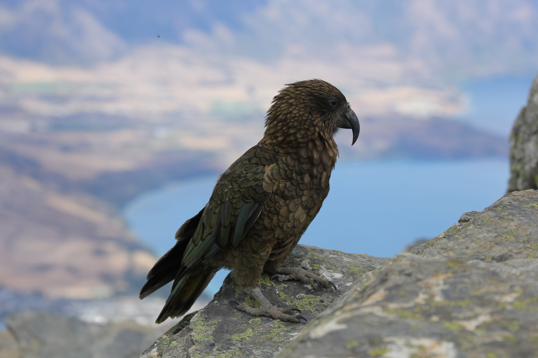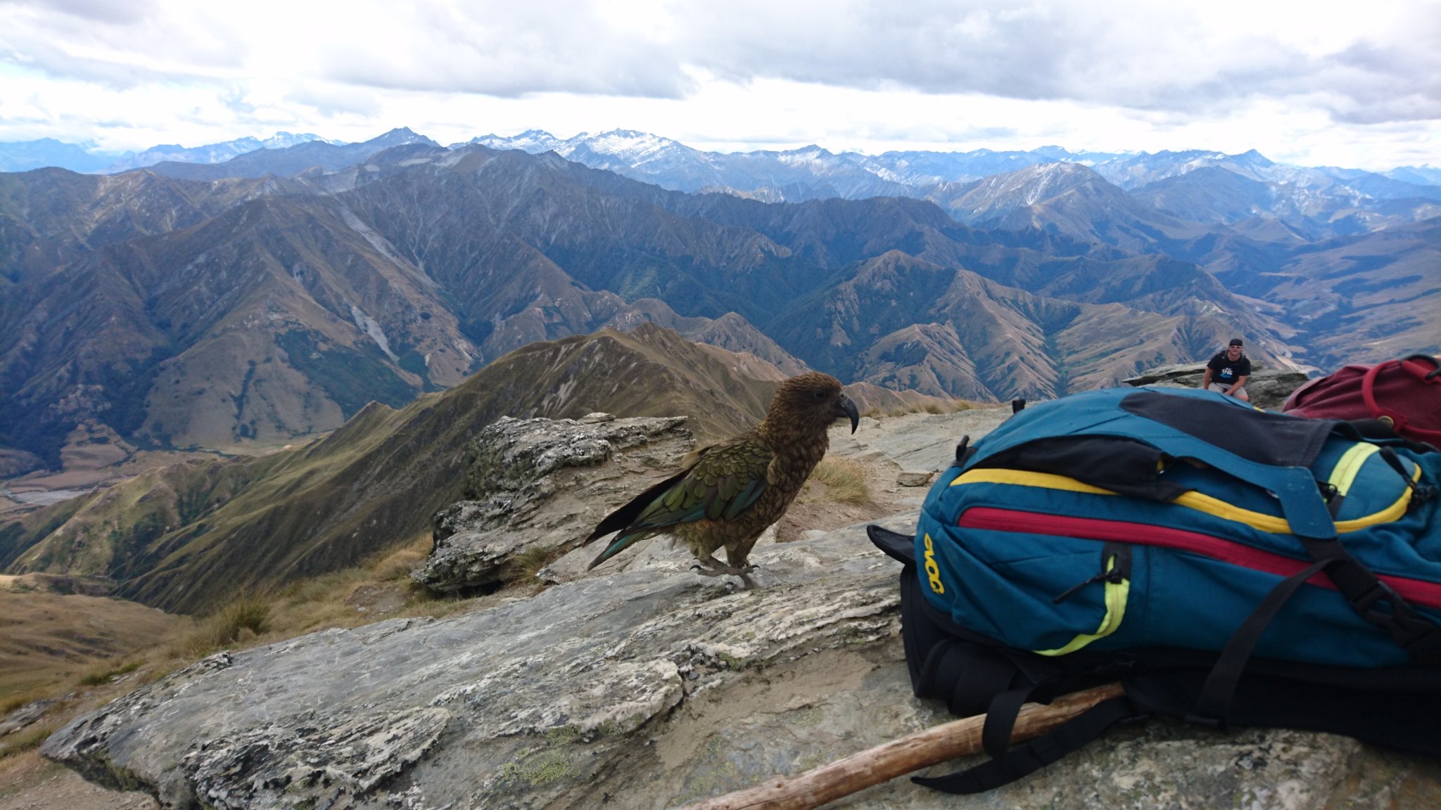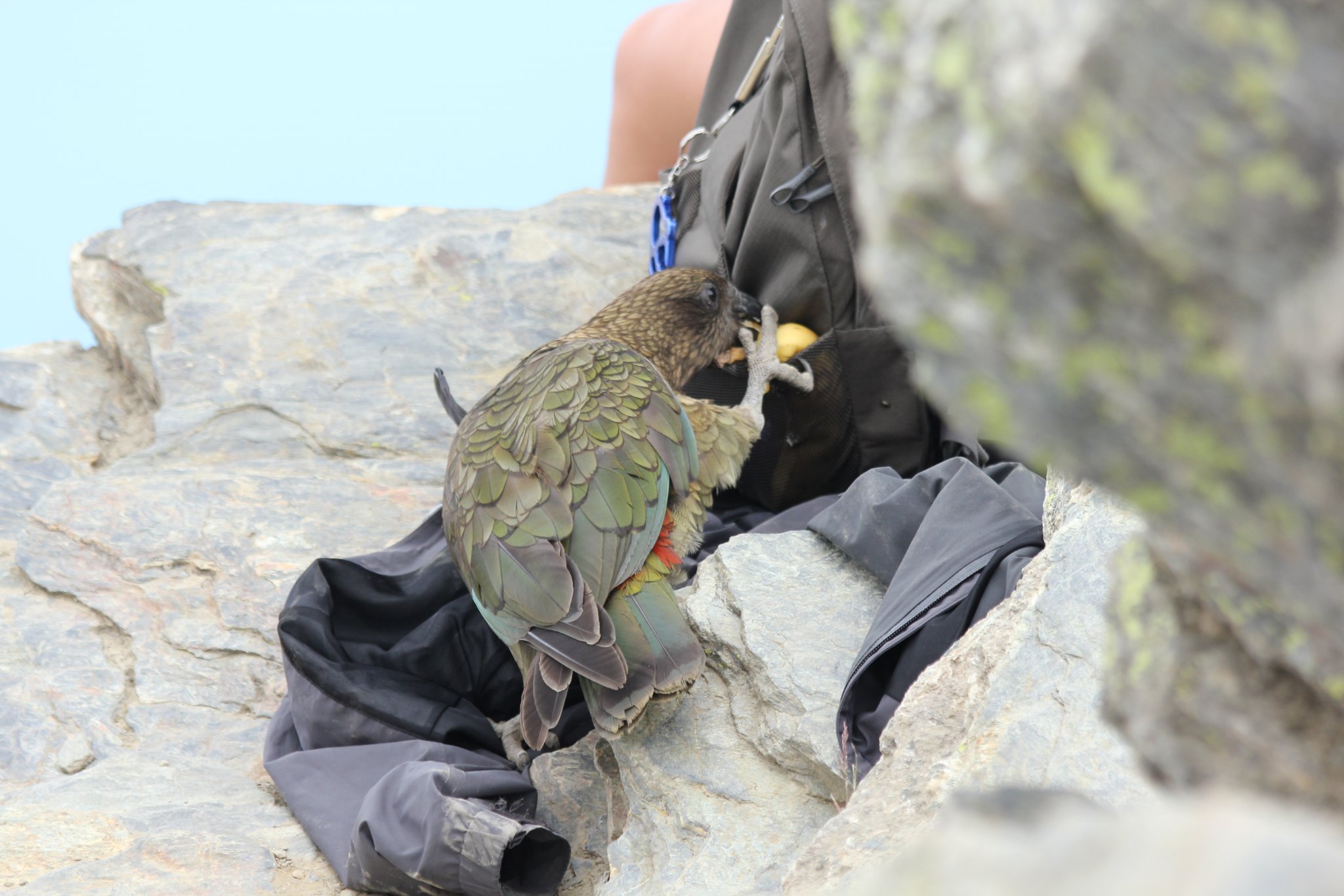 Ein Highlight waren unsere ersten Sichtungen des alpinen Papageis! Auf dem Gipfel des Ben Lomonds mischte ein Kea Pärchen die Touristen auf. Es war amüsant (und nervig) wie die beiden alle Rucksäcke inspizierten, hinein schauten und versuchten Essen zu stehlen. Eine Frau stand auf einem Felsvorsprung und darunter war wohl das Kea Nest. Die frechen Vögel bissen ihr zweimal in den Hintern! Keas werden sehr aufdringlich und zu gelangweilten Bettlern mit Energieüberschuss, wenn sie von Touristen mit ‘Junkfood’ gefüttert werden. Daher ist es auch verboten. Wir haben später noch viel nettere, aber leider auch sehr scheue Exemplare gesehen.