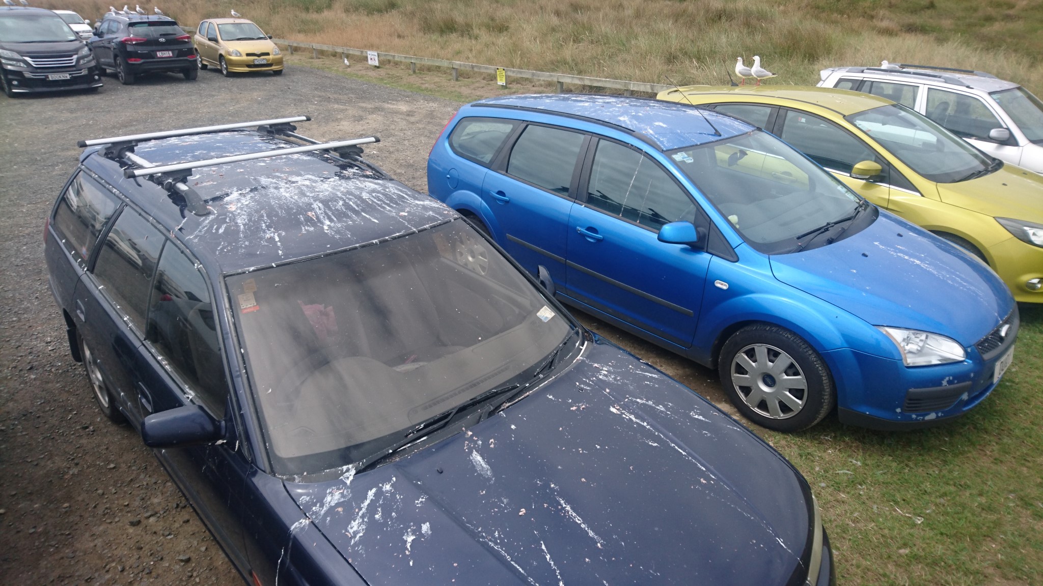 Nach dem schönen und ruhigen Southland ging es Richtung Dunedin. Dort gibt es auf der Otage Peninsula eine Royal Albatross Kolonie und gaaaanz viele Möwen, die sich beste Mühe geben jedes einzelne Touristen Auto vollzuscheißen. Schon am Parkplatz und am Lookout Point des Royal Albatross Centers kann man die wunderschönen Riesenvögel bei starkem Wind elegant über die Klippen und das Meer gleiten sehen. Die Tour zu den Nestern, bei der man ohnehin keine Fotos machen darf, haben wir dann gar nicht mehr gemacht. Ein Albatross ist meiner Einschätzung nach etwa drei bis vier mal so groß wie eine Möwe.
