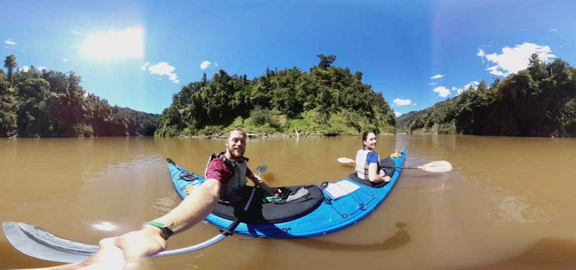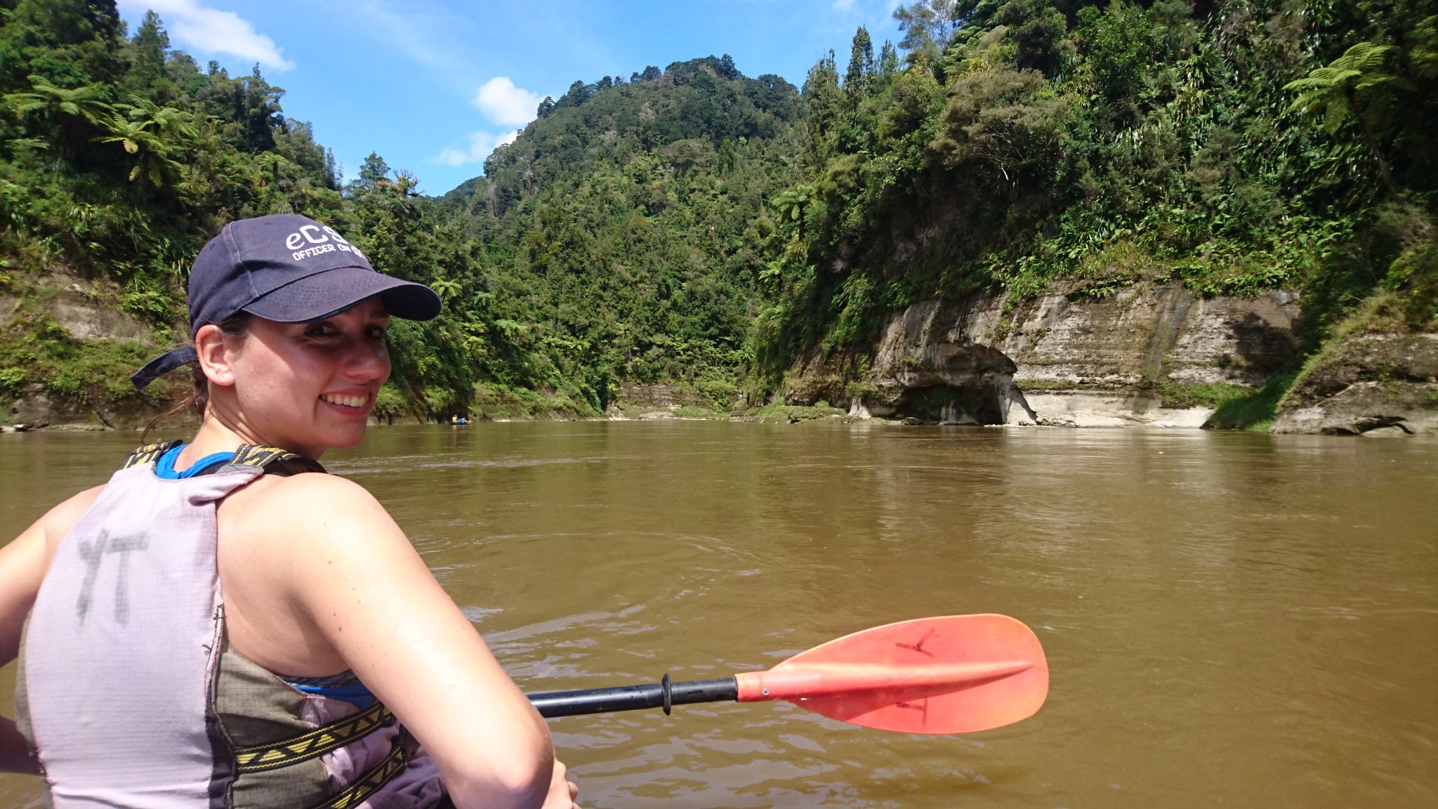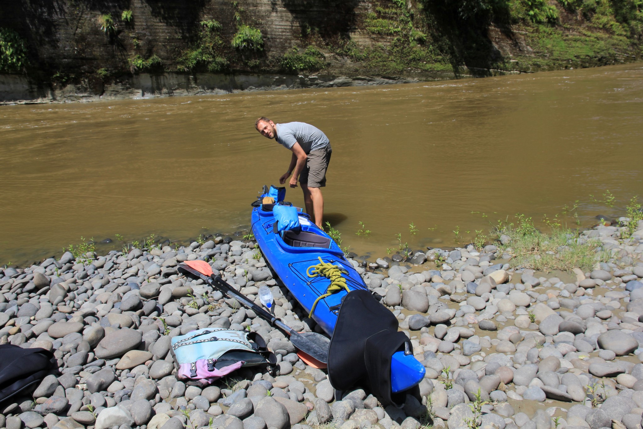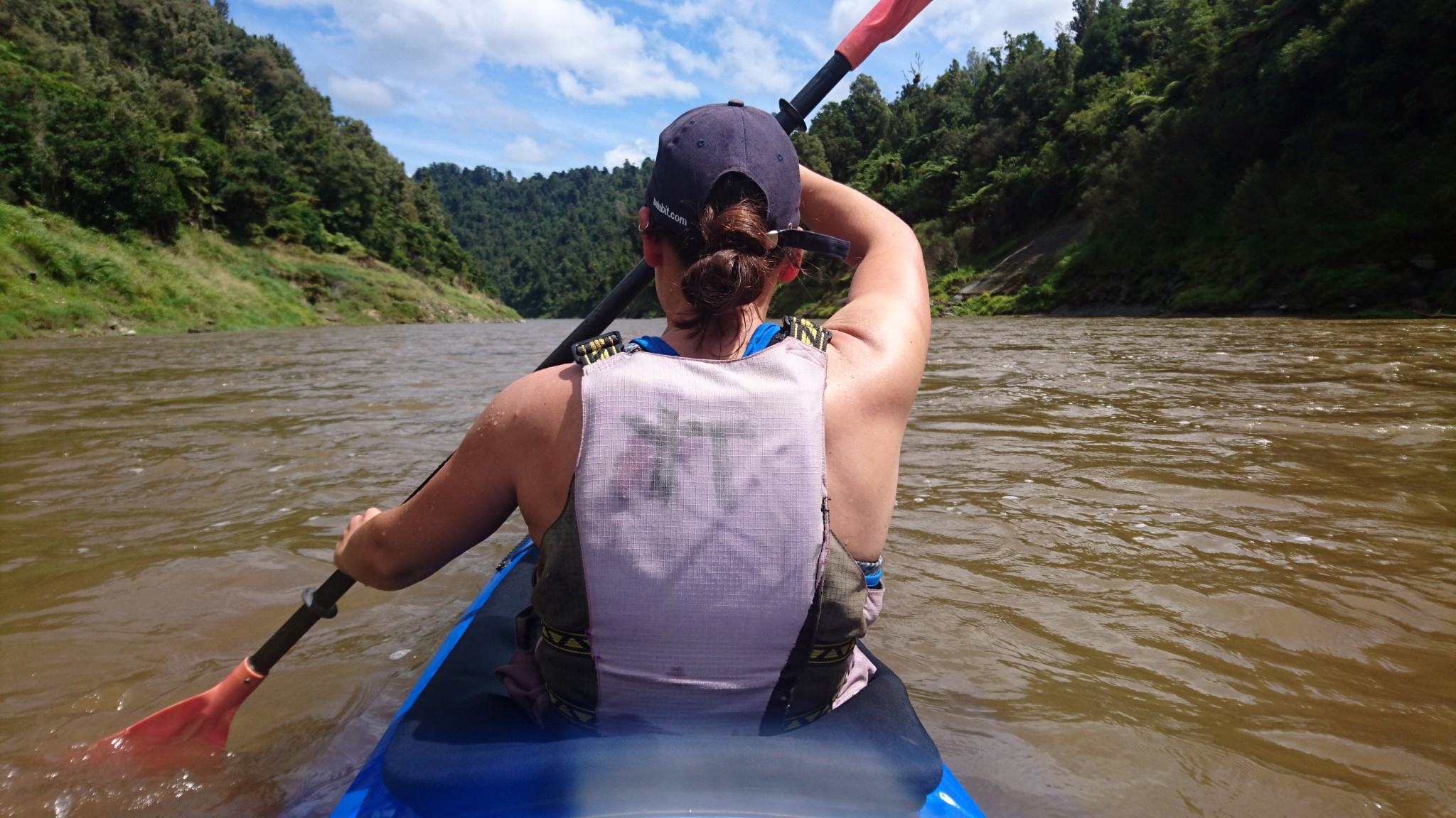 Obwohl man auf der Whanganui Journey kaum läuft, gehört sie zu den neun Great Walks Neuseelands. Die meisten mieten hierfür ein Kanu, wir haben uns aber für ein Kayak entschieden. Damit ist man schneller und wendiger, allerdings ist es auch etwas wackeliger. Gleich beim losfahren wurden wir schon so schief ins Wasser geschoben, dass wir um ein Haar gekentert wären!