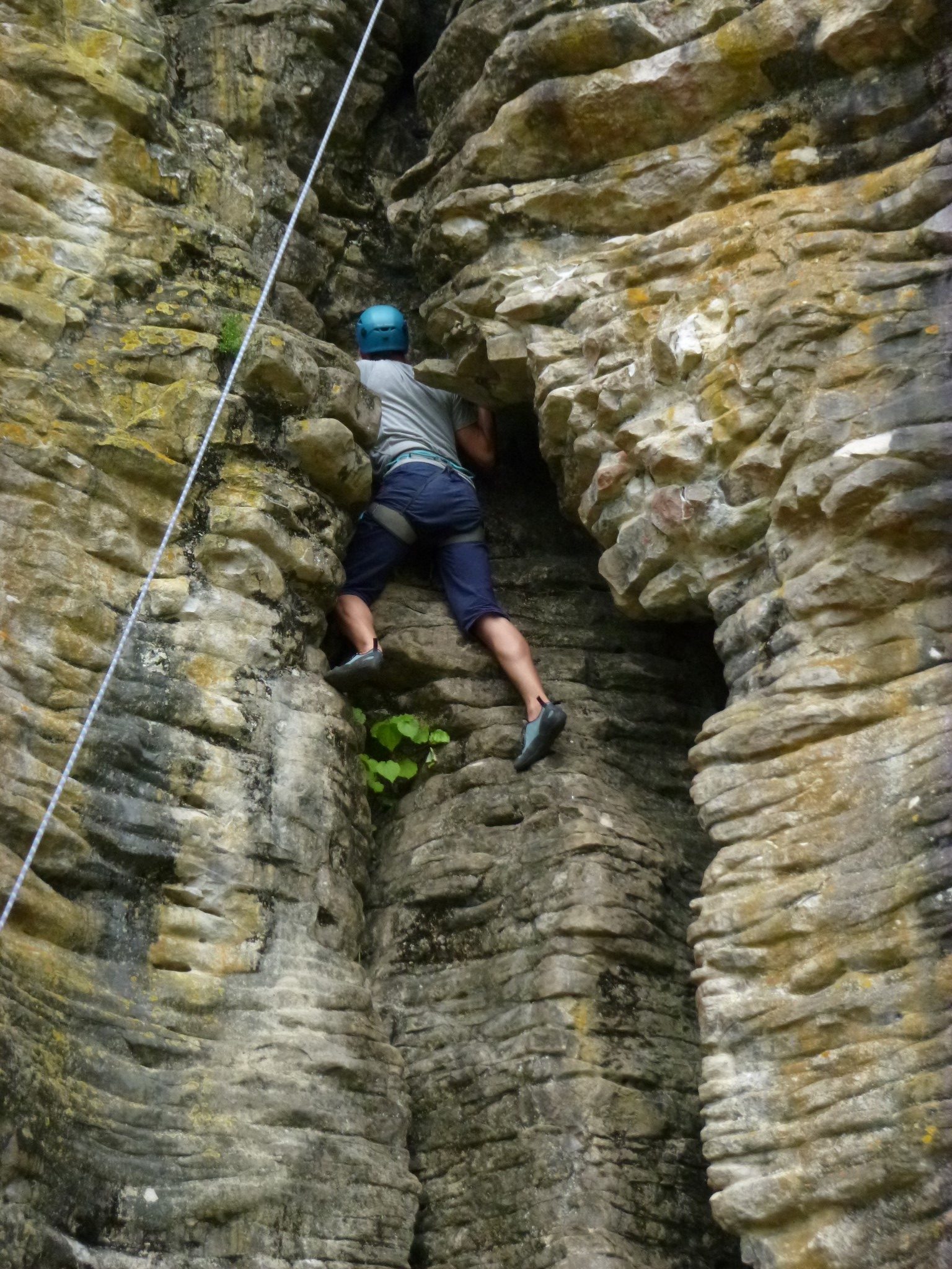 Am Tag drauf ging es also nach Raglan zu einer Klettertour. Unser erster richtiger Kletterausflug mit gegenseitigem Sichern – kein Bouldern und kein Klettersteig. Das war herausfordernd, da mich in manch Höhen dann doch der Mut verlässt. Aber es hat mega Spaß gemacht! Unser Guide war ein lustiger Engländer, der uns eine private Tour in einer wunderschönen verlassenen Limestone-Landschaft gegeben hat.